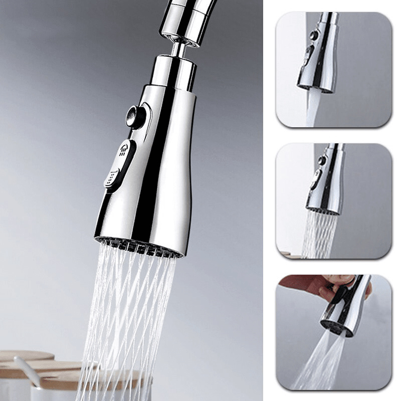 Uppgradera din kökskran till en mångsidig 360° kran med 3 olika lägen: stream, spray och dubbel aqua blad. Passar standardkökskranar och ger flexibilitet i vattenflödet.