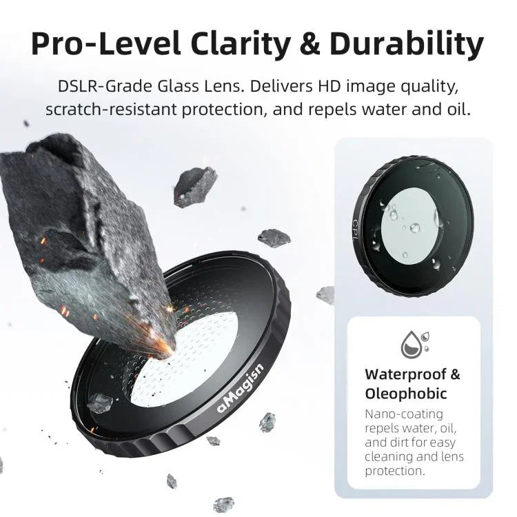 Fånga varje ögonblick, oavsett väder, med aMagisn Vattentätt Filter i aluminiumlegering för Insta360 GO Ultra.