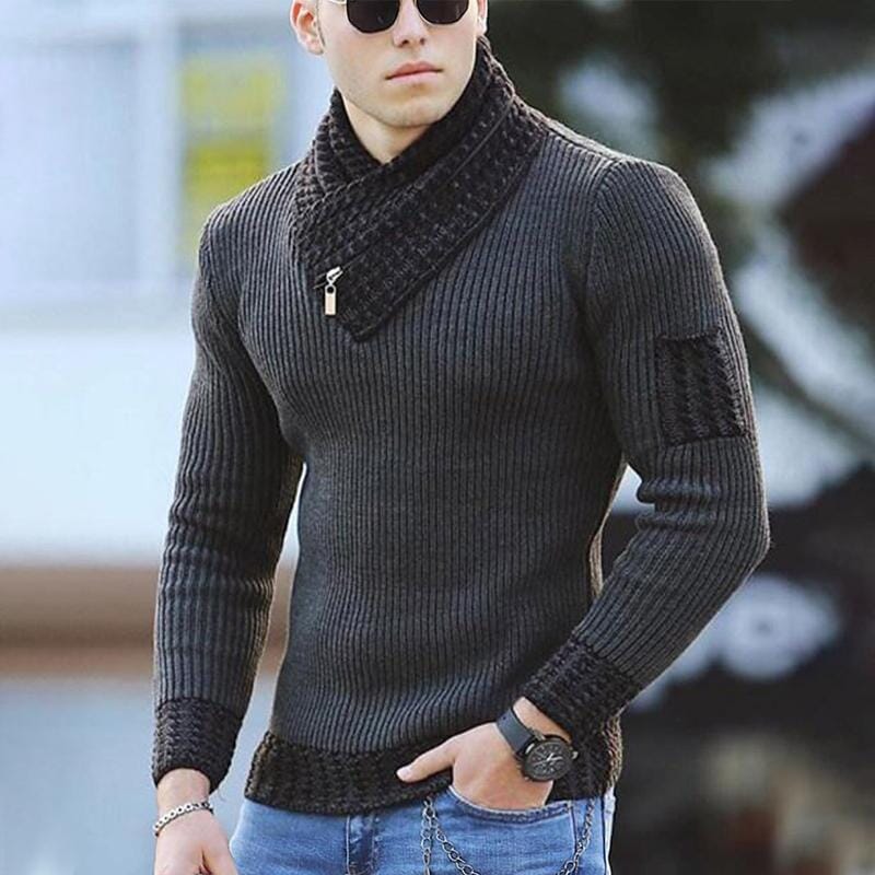 - Ge din stil en uppgradering med denna avslappnade långärmade tröja. De solida mönstren och ribbade muddarna skapar en modern och unik känsla, med speciellt fokus på den eleganta sjalkragen.