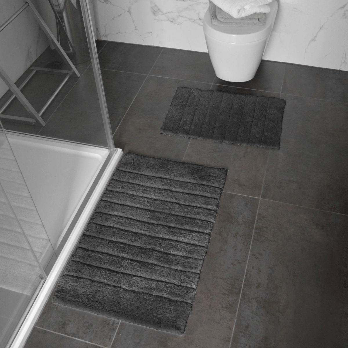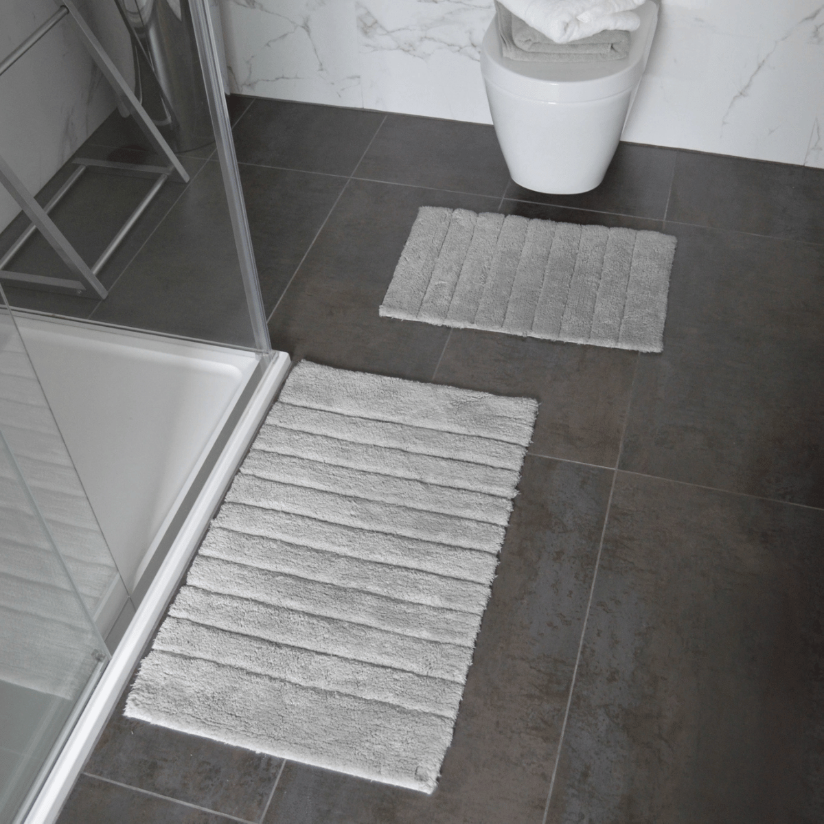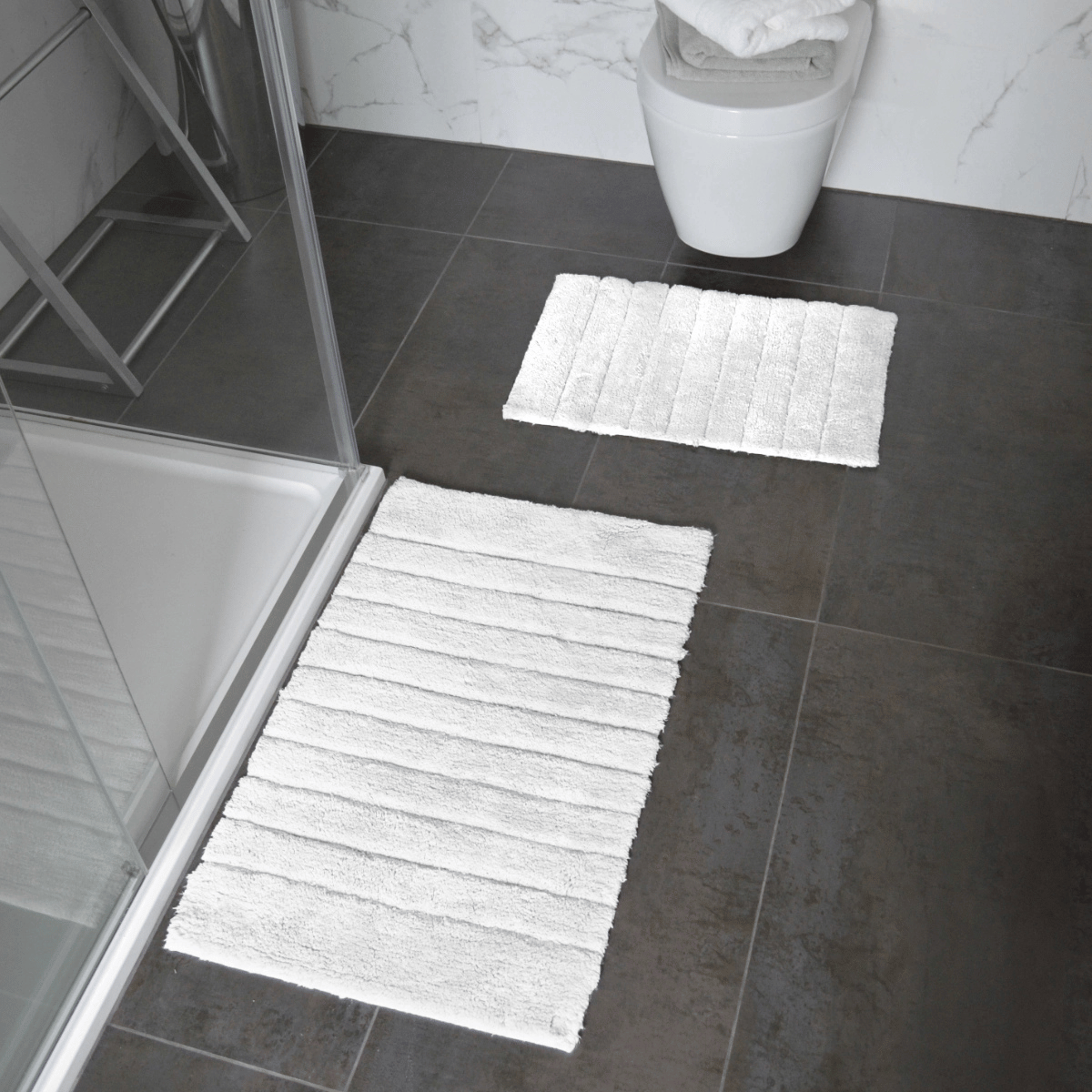 Skapa en stilren och mjuk känsla i ditt badrum med Marlow badrumsmattor – ett tvådelat set i 100% ekologisk bomull. Setet innehåller två mattor i storlekarna 50x80 cm och 40x60 cm, perfekta att placera vid duschen, badkaret eller handfatet.