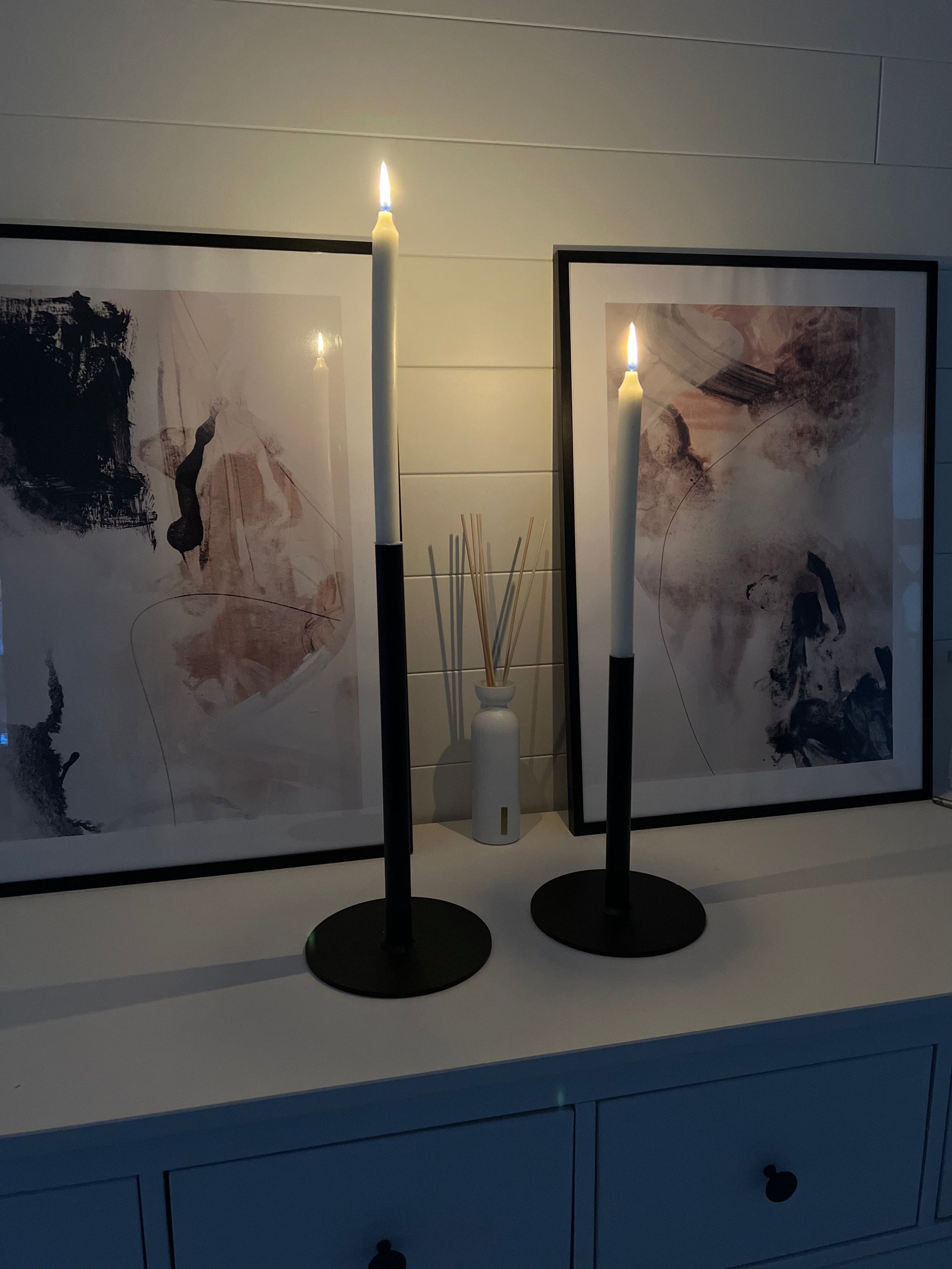 Bordsljusstakar med fotplattor i robust metall och svart finish.