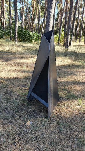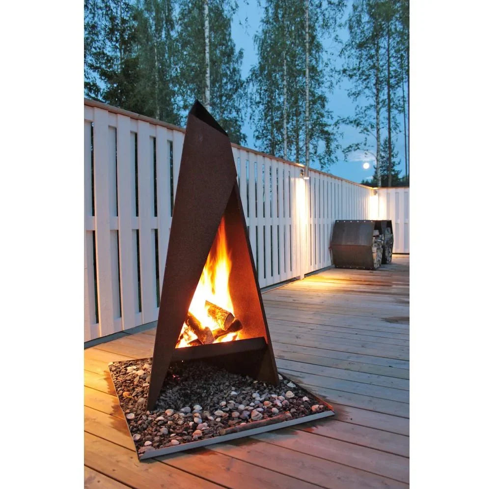 Vår pyramidformade eldstad i cortenstål är ett konstverk för din utomhusmiljö. Den unika designen, inspirerad av naturens egna former, skapar en både modern och tidlös atmosfär.