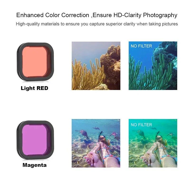 Färgfilter 2-pack för dykning - Ljusröd + Lila till GoPro Hero12/11/Mini/10/9 Black - Kit.