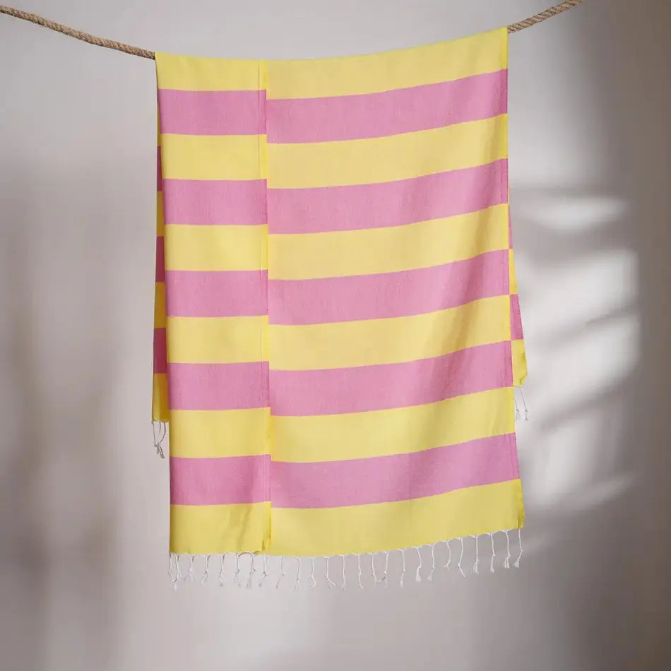 Våra hamamhanddukar är ett måste för alla strandälskare. Tillverkat av högkvalitativ och ekologisk bomull som tål sand och saltvatten, håller detta lakan dig bekväm och torr på stranden eller vid poolen.