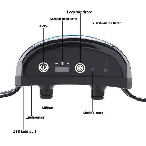 - Ljudläge: Halsbandet ger ett kort pip, ökande i längd vid upprepade skall.