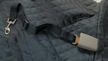 Säkerhet är vår främsta prioritet. Därför inkluderar vi ett gratis hundbälte som du enkelt kan fästa i din hunds sele som sedan klickas fast genom hålen för bälteshållaren.