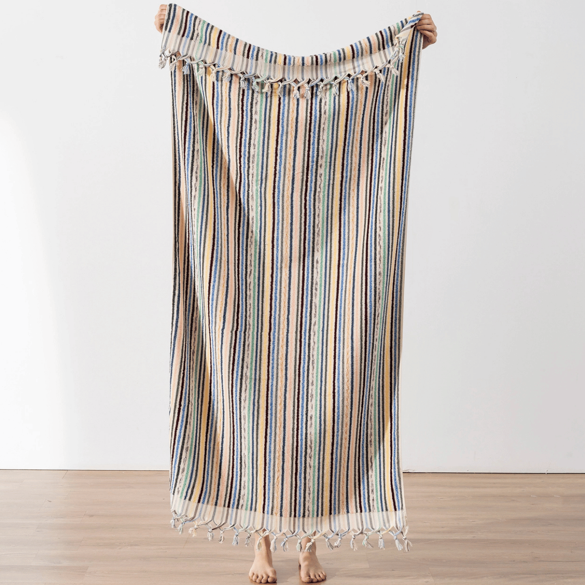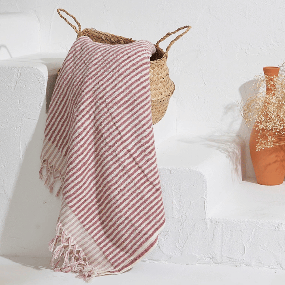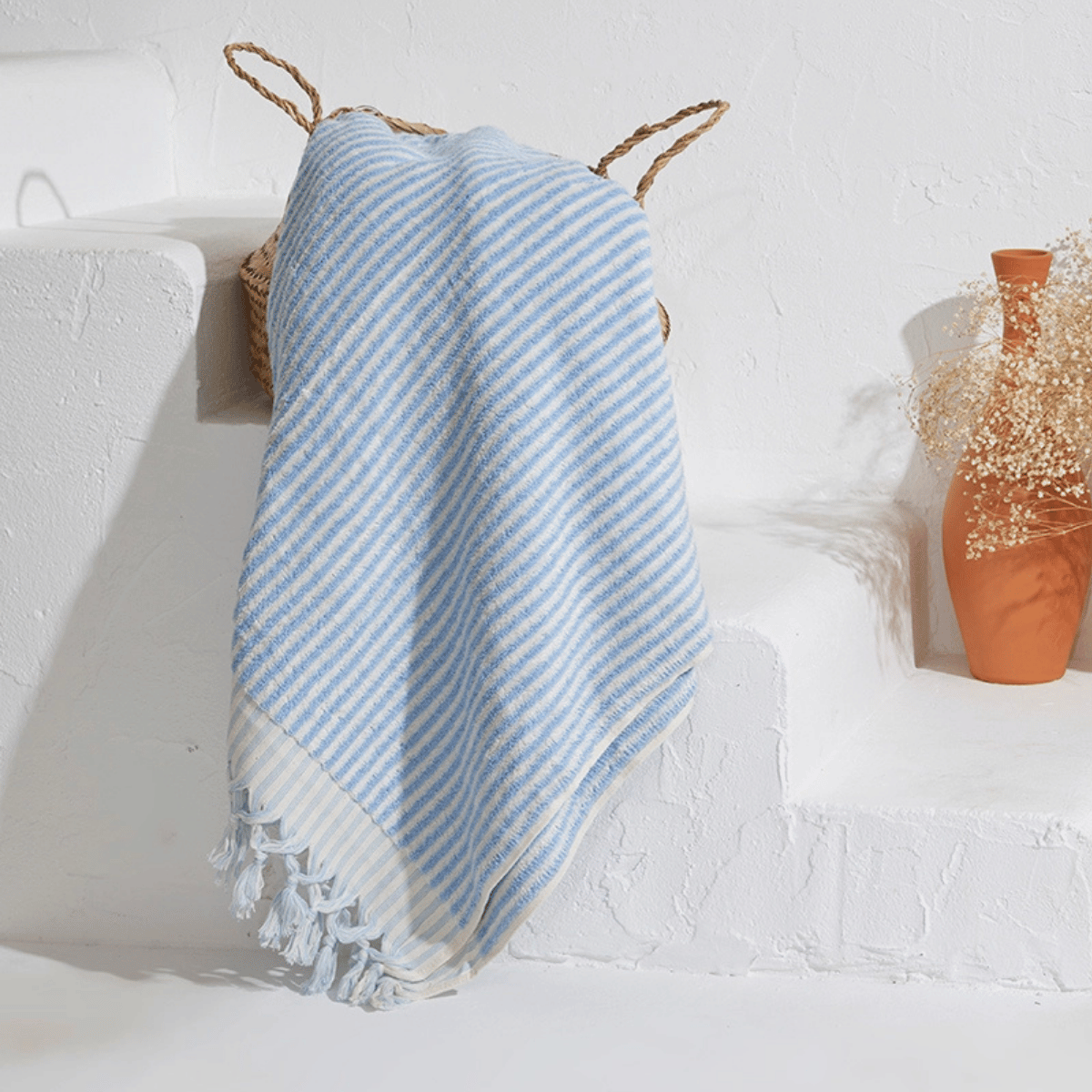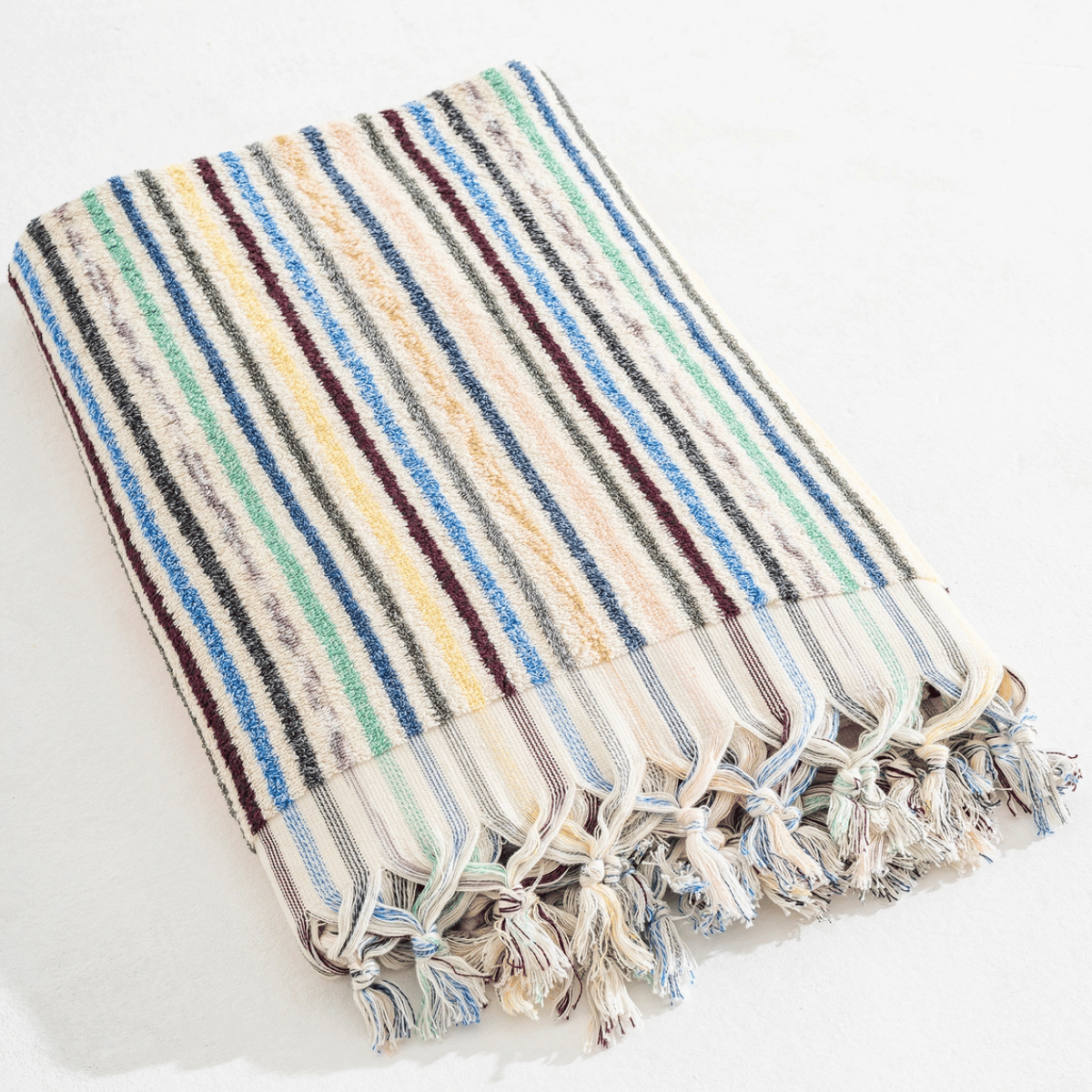 Frottékvaliteten gör handduken extra slitstark och superabsorberande, samtidigt som den förblir elegant och tidlös med sina klassiska randiga mönster. Varje handduk är omsorgsfullt handvävd för att kombinera traditionellt hantverk med modern stil.