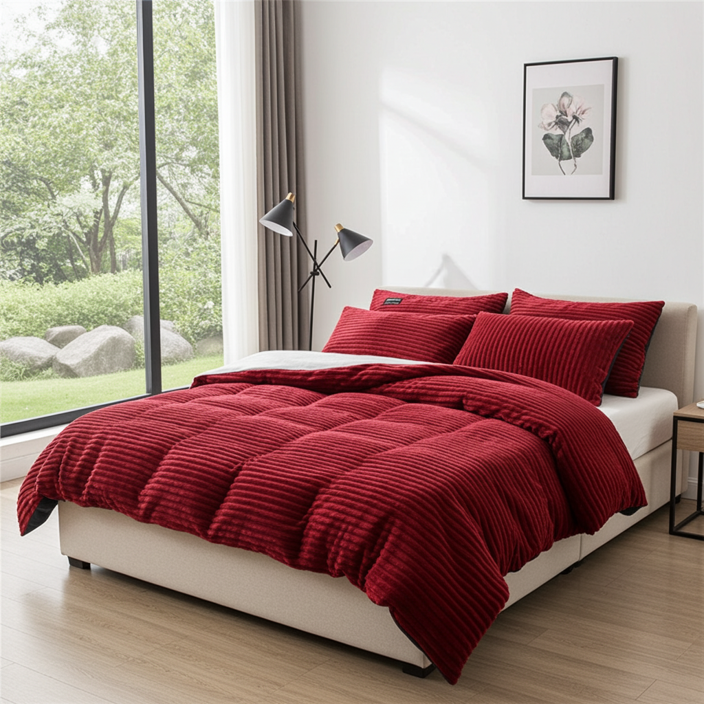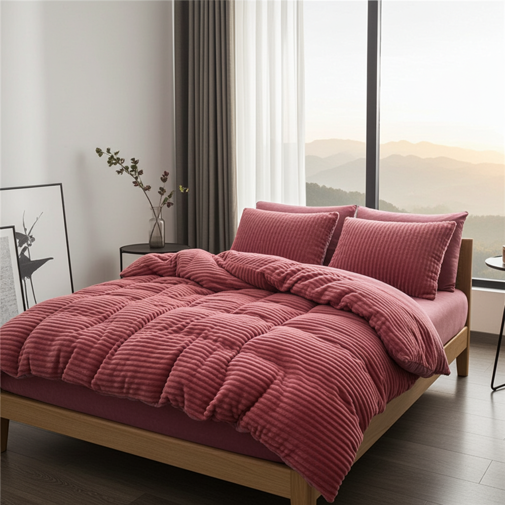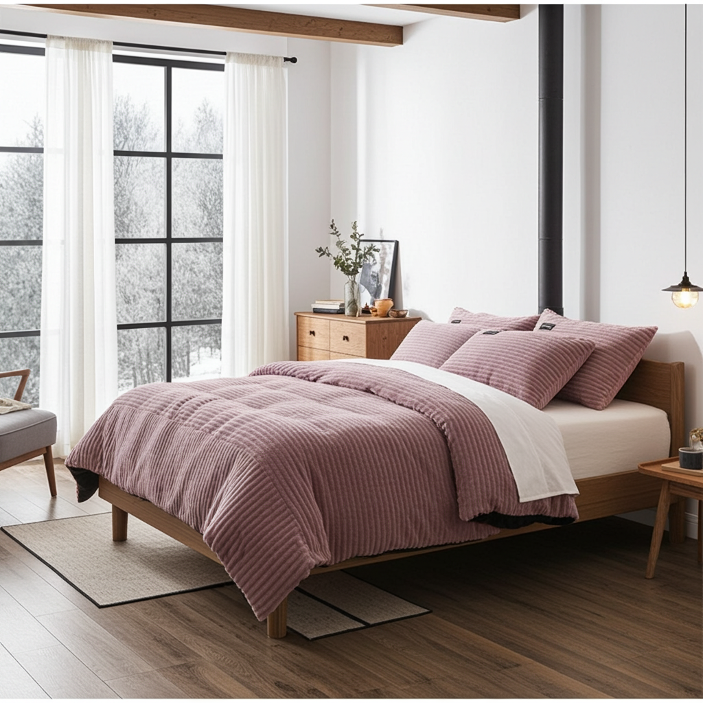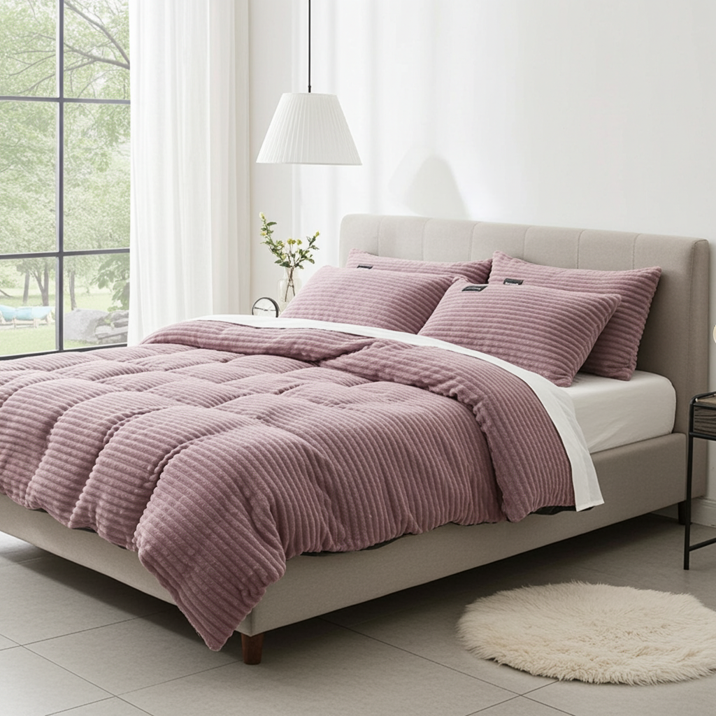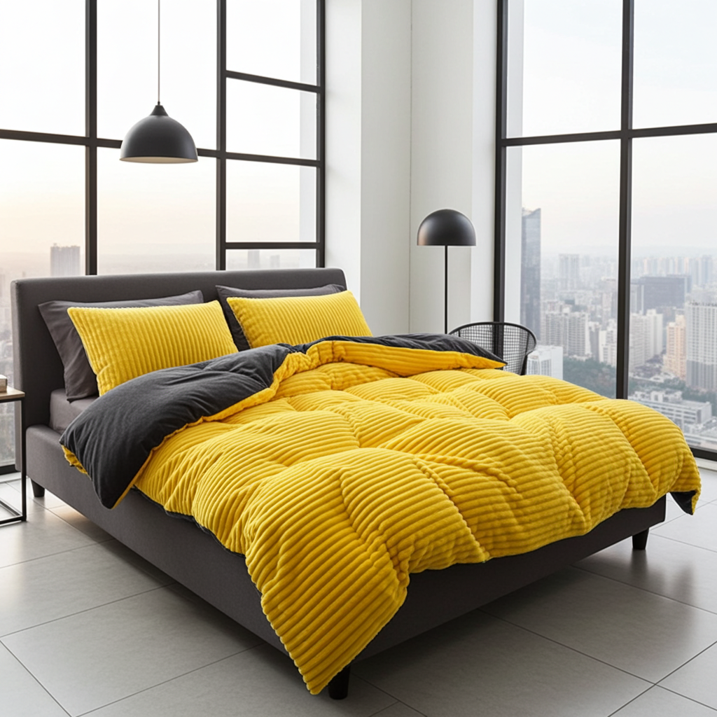 Ge sovrummet en ny och levande känsla med detta bäddset i högkvalitativ polyester. Setet innehåller ett mjukt påslakan och två örngott samt lakan för de större sängarna, designade för att ge komfort och stil. Det dubbelsidigt borstade sammetsliknande materialet är lent mot huden, färgbeständigt och rynkresistent – perfekt för vardagsbruk.