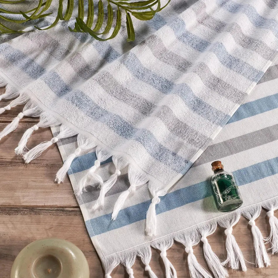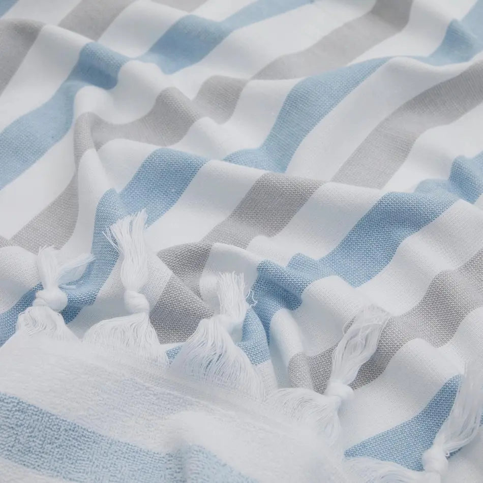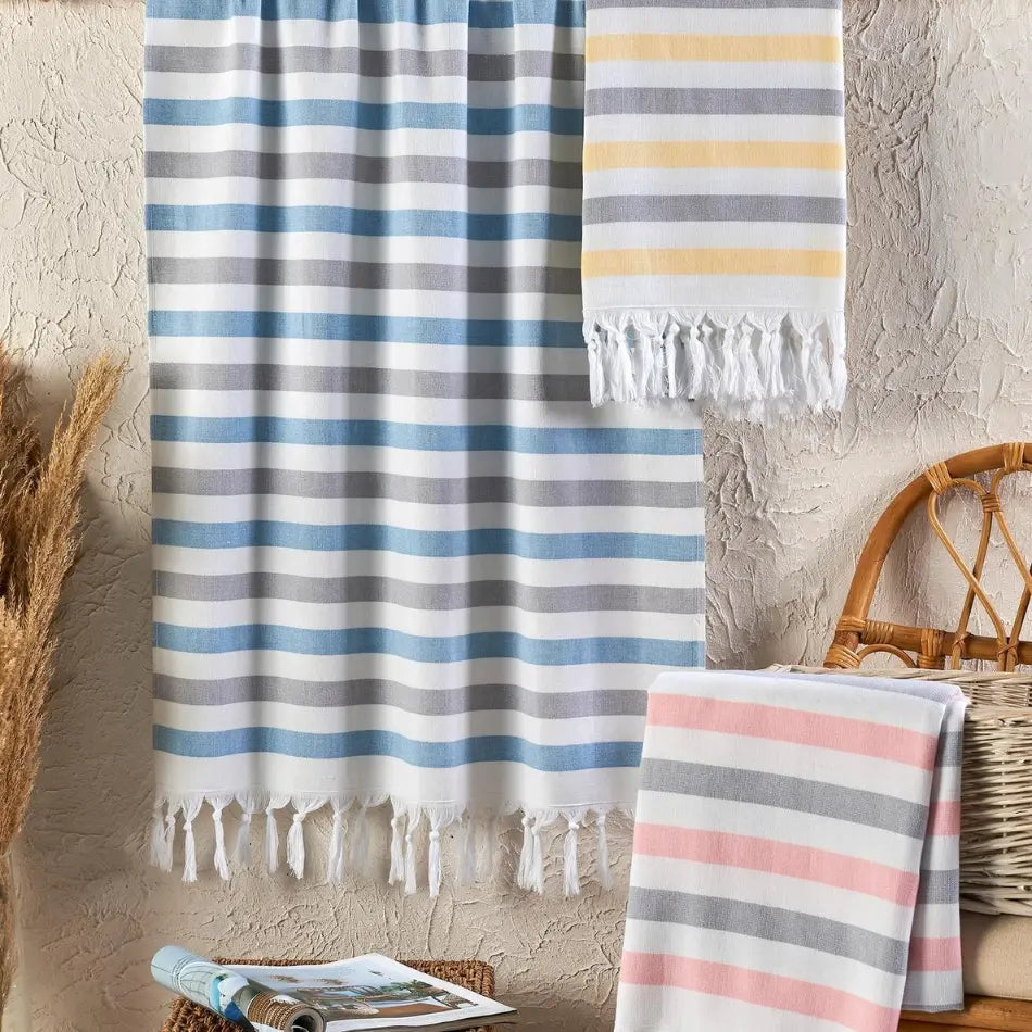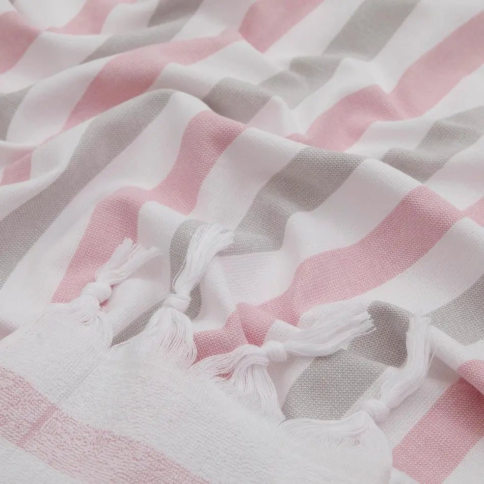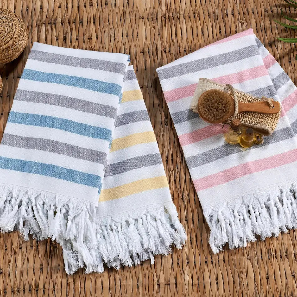 Vår populära hamambadlakan med frotté på ena sidan.Med vackert somriga ränder i härliga pastellkulörer har hamam kvalité på ena sidan, och frotté på andra, är mycket populär och passar utmärkt för stranden, båten, campingen. Mare tar ihopvikt lite plats och torkar snabbt.