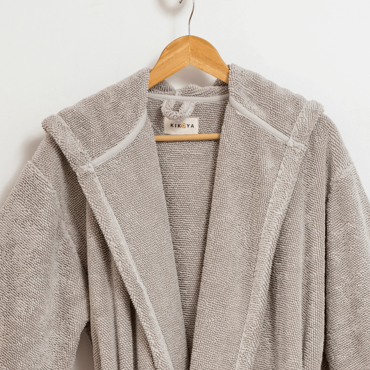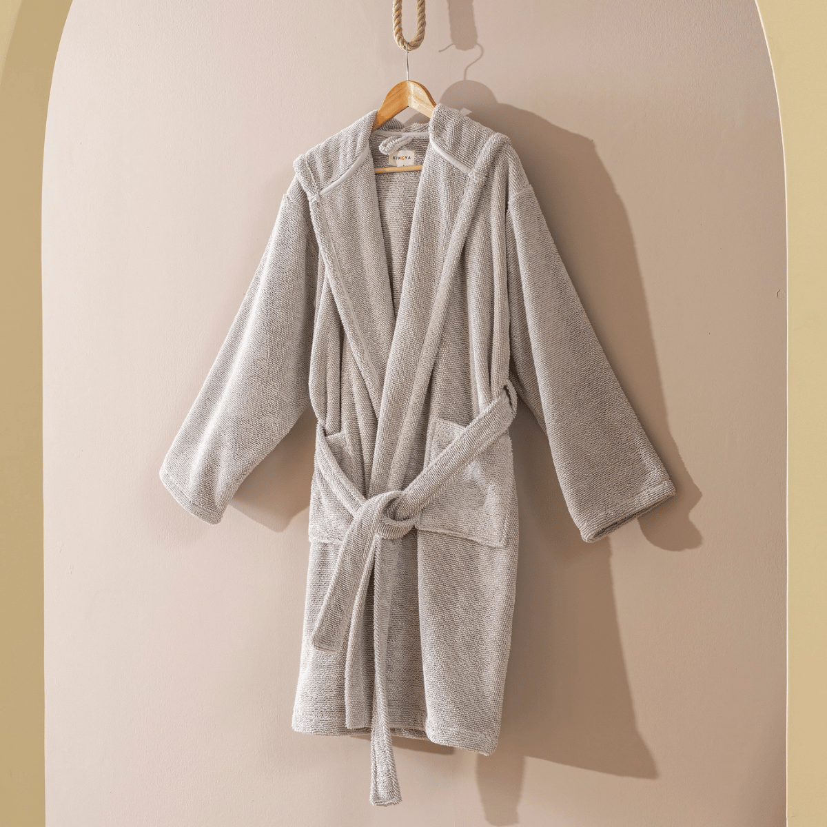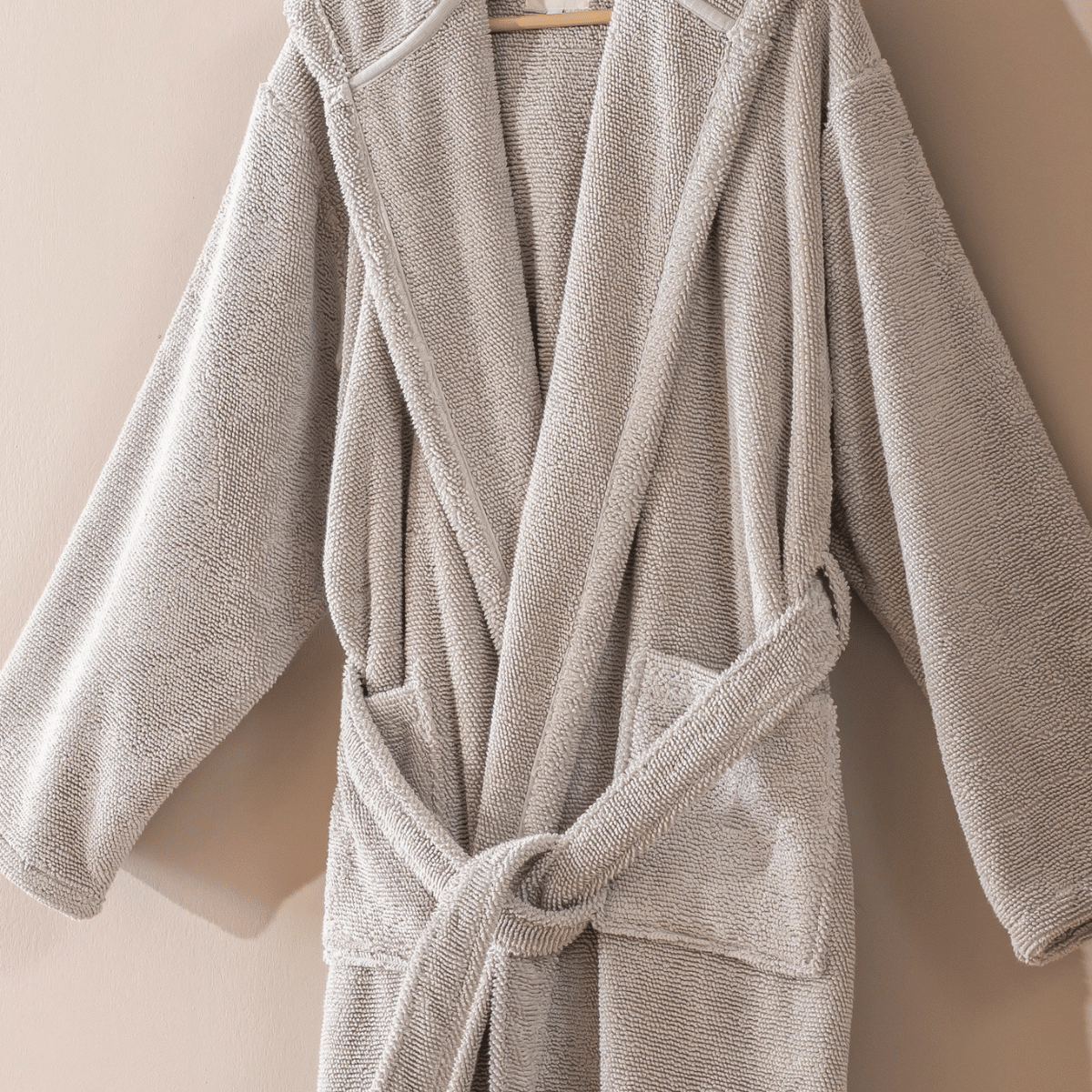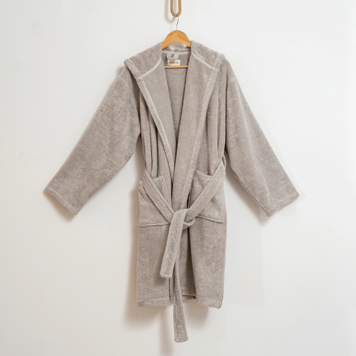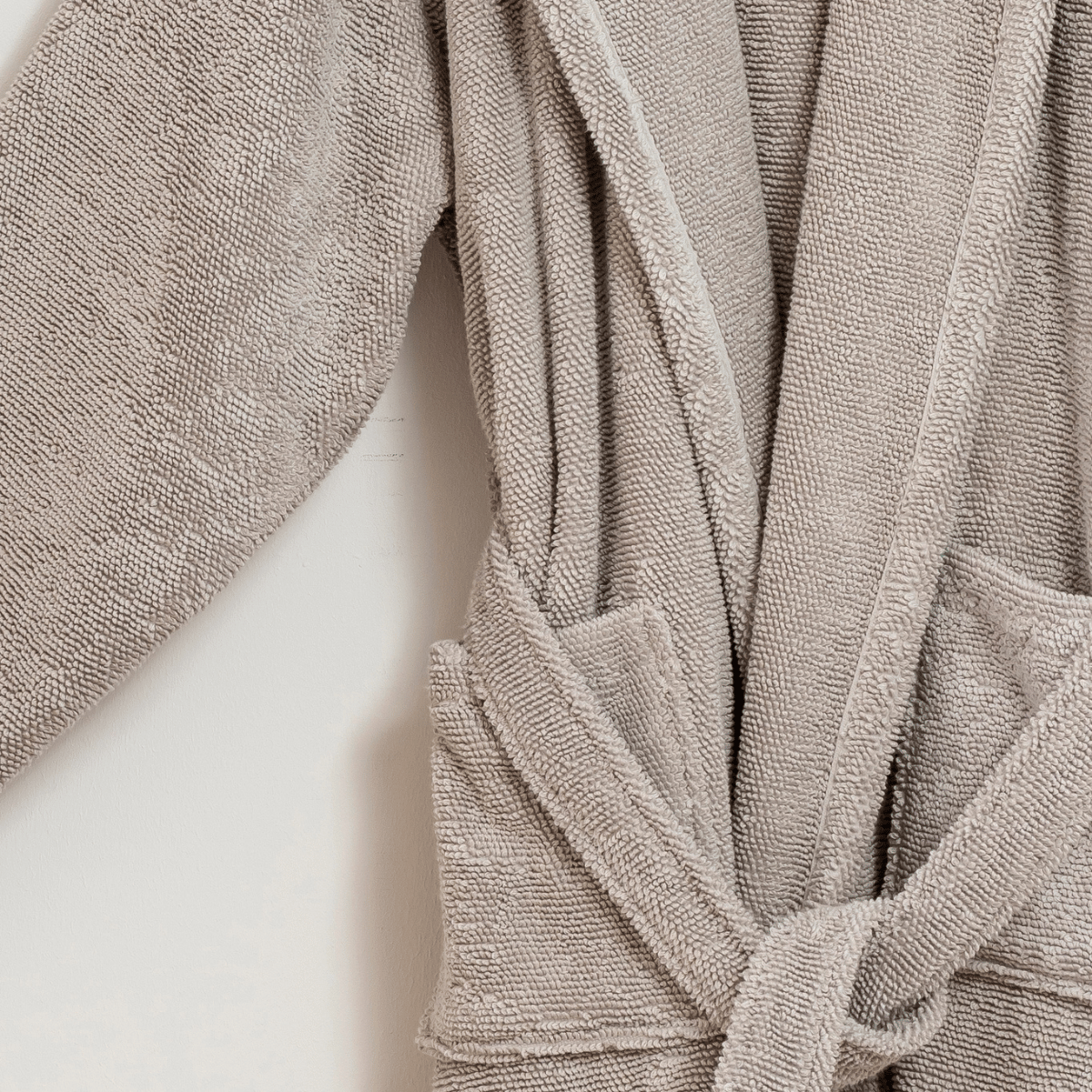 Upplev lyxen av vår morgonrock i premium bomull – perfekt för lugna morgnar, avkopplande kvällar eller sköna spa-stunder hemma. Denna unisex badrock i mjuk, förtvättad bomull med en vacker Pebble Terry-struktur är både fluffig och lätt. Den beige färgen och den rustika designen skapar en elegant och tidlös känsla som passar alla stilar.