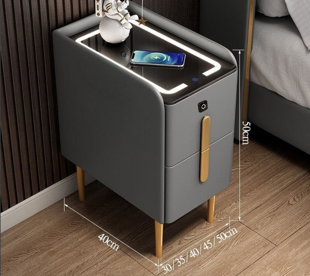 NARROW Sängbord med 2 lådor & inbyggd mobilladdare