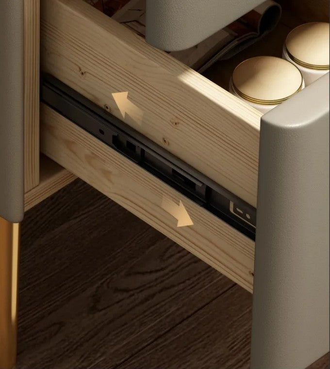 Förvara dina saker och ladda mobilen med vårt NARROW Sängbord. Den stilrena ytan har en mjuk, nappaläderfinish som utstrålar exklusivitet och kräver minimalt underhåll. Välj färg mellan dovt brunröd eller en sobrare gråblå med gulddetaljer.