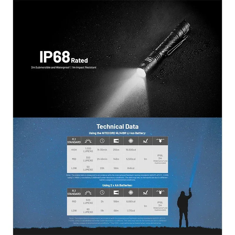 Nitecore MT2A Pro Ficklampa - 1000lm med AA / NL1416R, 1600mAh batteri