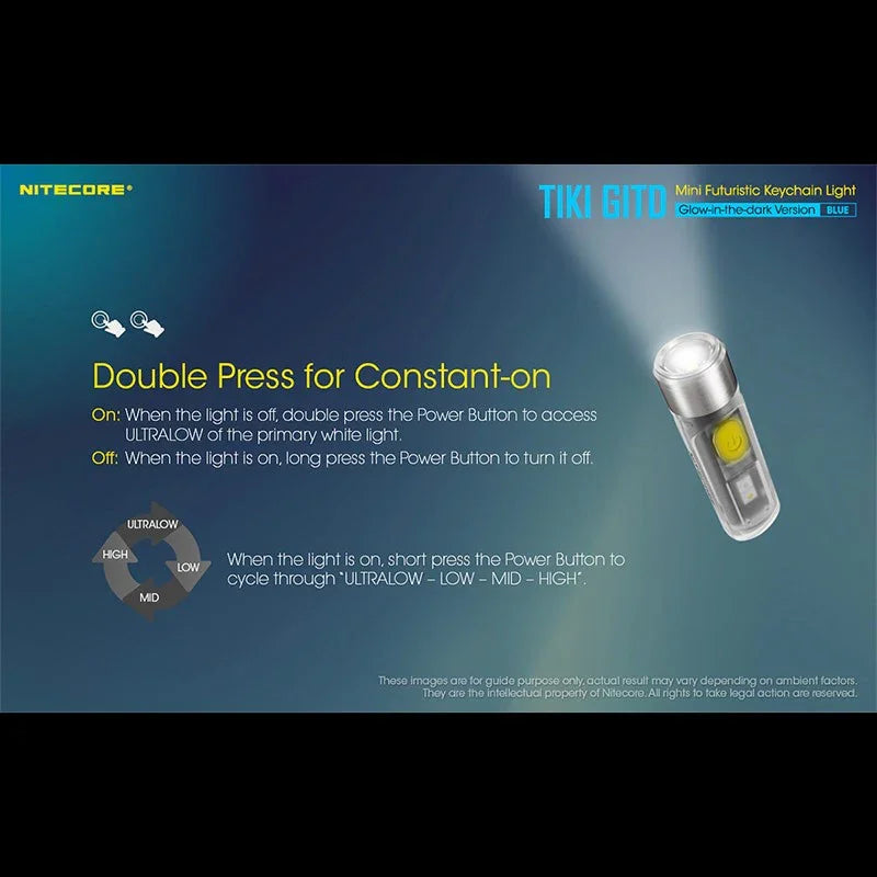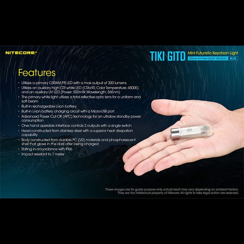 Nitecore TIKI GITD Blue Nyckelringslampa USB-C - 300lm