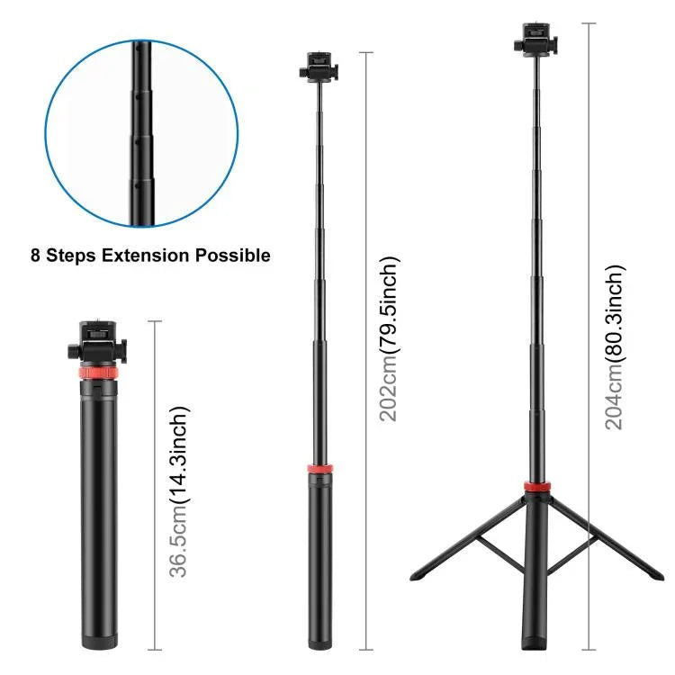 Det här teleskopstativet är framtaget med portabilitet och enkel användning i fokus. Du kan bära det i en liten väska, hålla det i handen eller fästa det på en ryggsäck när du är på språng. Installationen av enheter går snabbt och kräver inga extra verktyg. Den smarta konstruktionen gör det lätt att växla mellan olika tillbehör och arbetsmiljöer.