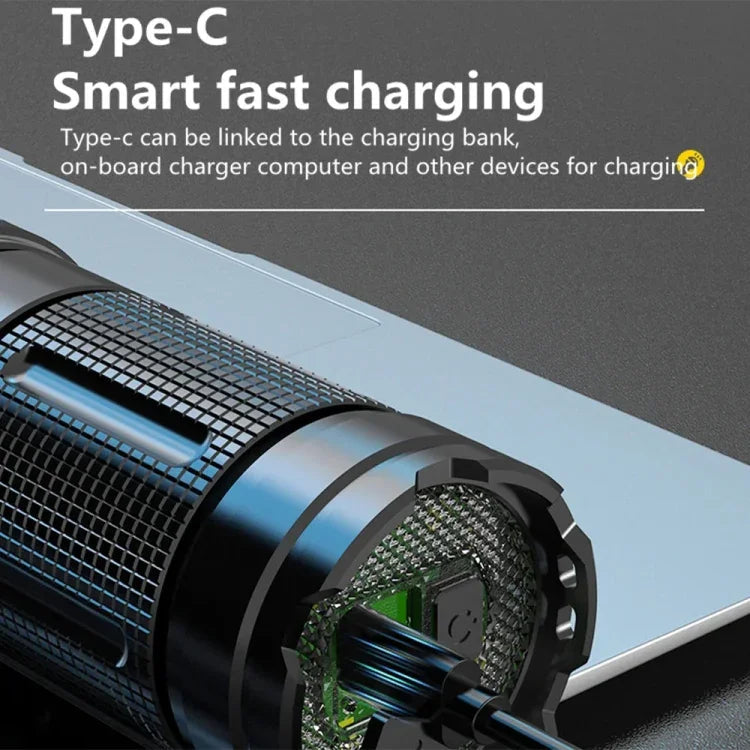 Utrustad med ett 6600 mAh-batteripaket (3 × 18650-batterier) har ficklampan en imponerande batteritid på upp till cirka 7 timmar, beroende på valt ljusläge. Tack vare Type-C laddningsporten går det snabbt att ladda ficklampan, och den fungerar även som powerbank för att ladda exempelvis mobiltelefoner eller små elektroniska enheter i fält.