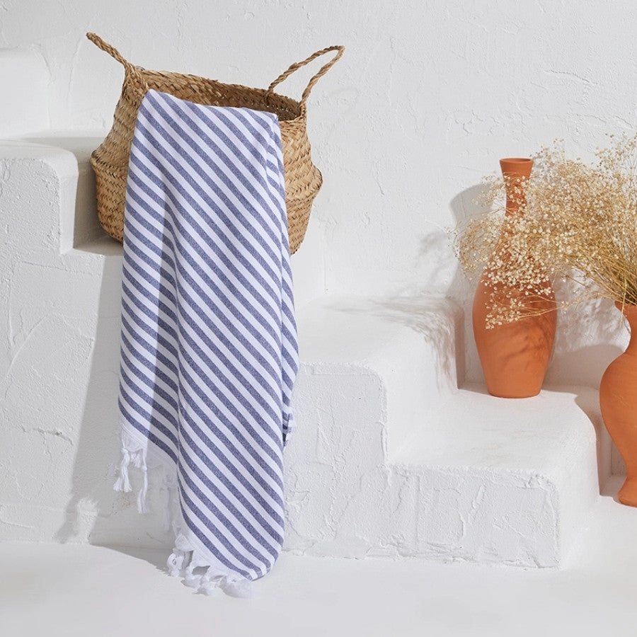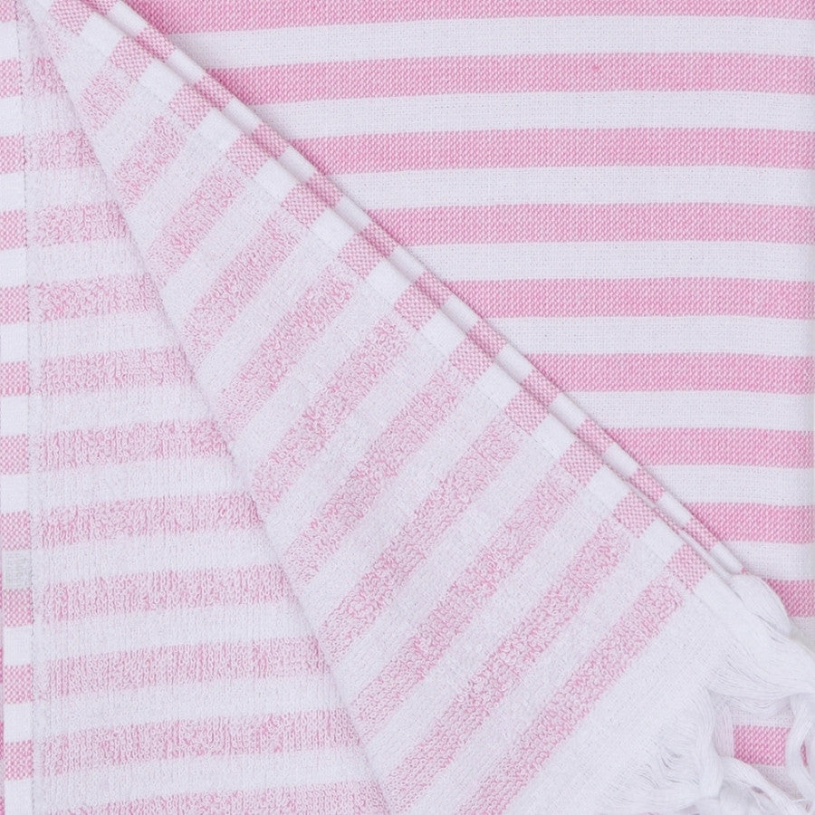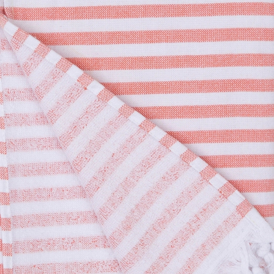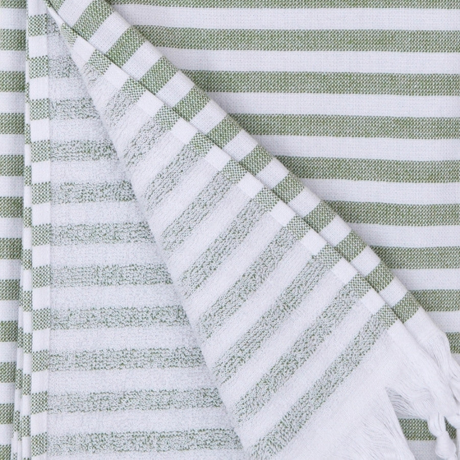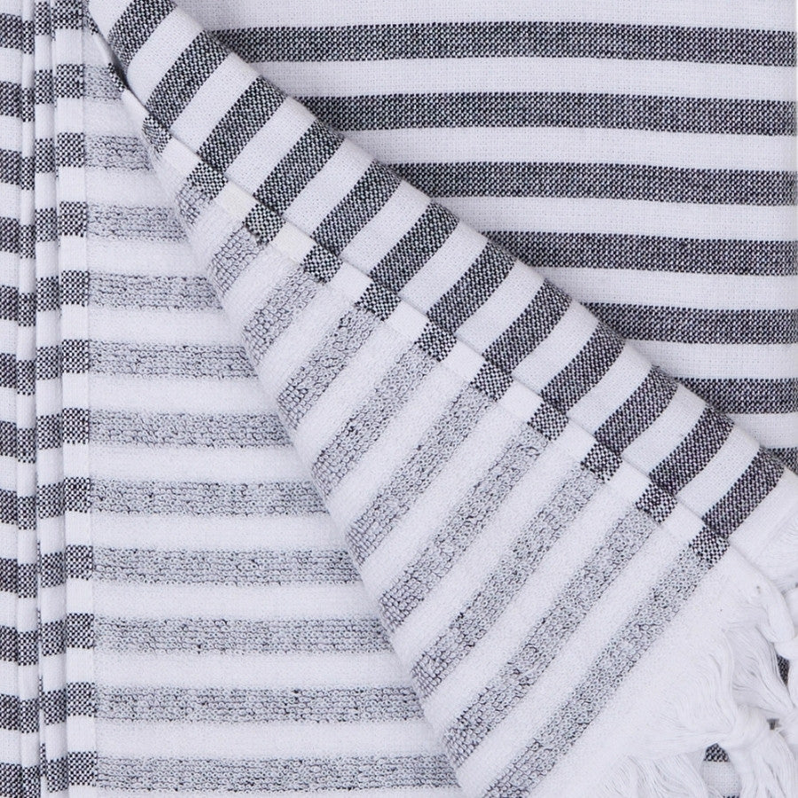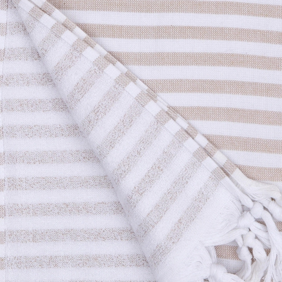 100% Premium bomull med frottébaksida. Denna handduk är perfekt för dig som vill ha frotté som tar mindre plats. Handdukarna är tillverkade av 100 % naturlig turkisk bomull som ger en hög komfort av mjukhet. De är högabsorberande och torkar snabbt. Då de väger mindre än en vanlig frotté lämpar de sig väl till stranden, båten, campingen. Med en design inspirerad av skandinavisk minimalism, är denna handduk ett bra val för dig som söker en bättre textil.