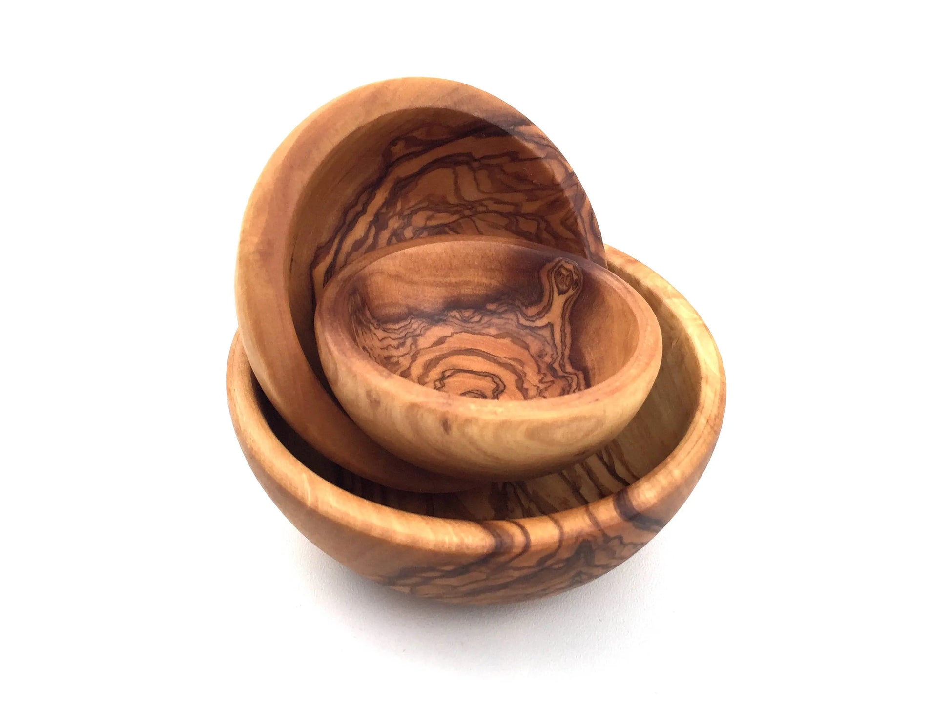 Set med 3 skålar i olivträ