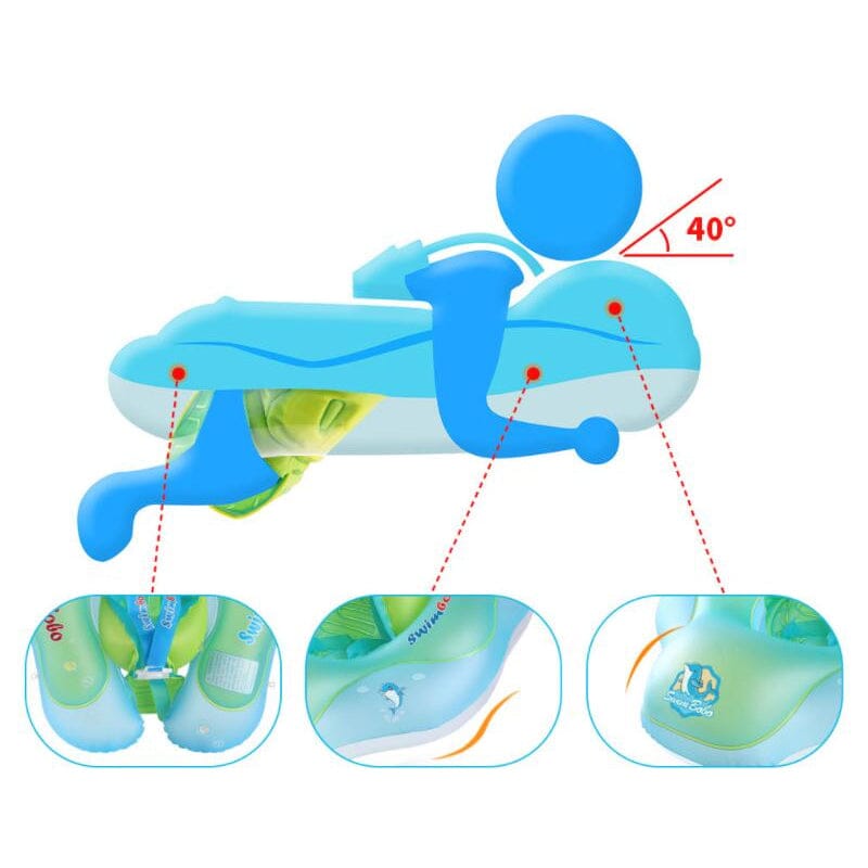 Den avtagbara solskärmen ger ett extra lager av skydd mot skadliga UV-strålar, vilket gör simringen perfekt även för soliga dagar. Nu kan ditt barn bada och njuta utan att exponeras direkt för starkt solljus!