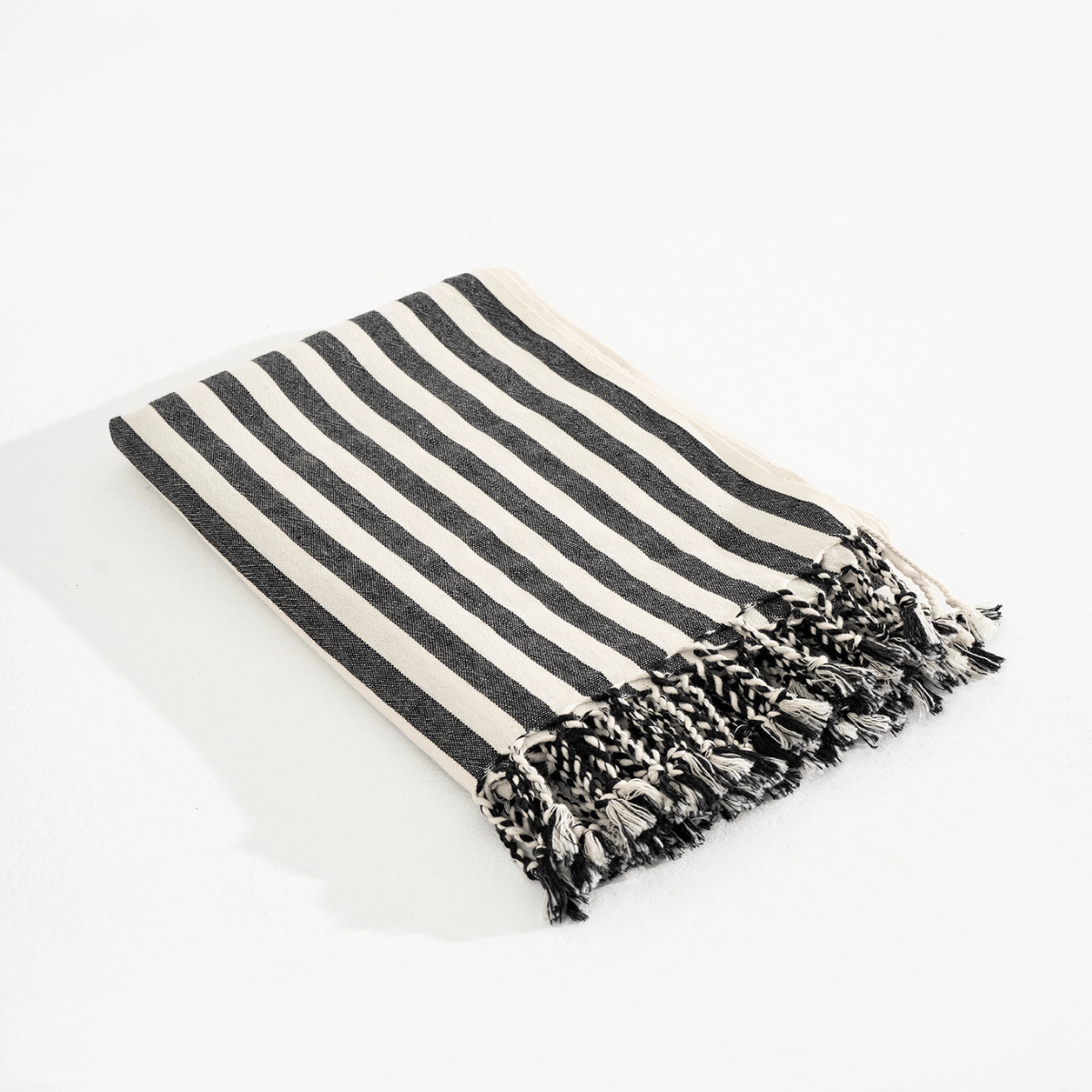 Ge din strandlook ett stilrent lyft eller ge bort som en uppskattad present – vår svart randiga hamamhandduk är både praktisk och elegant.