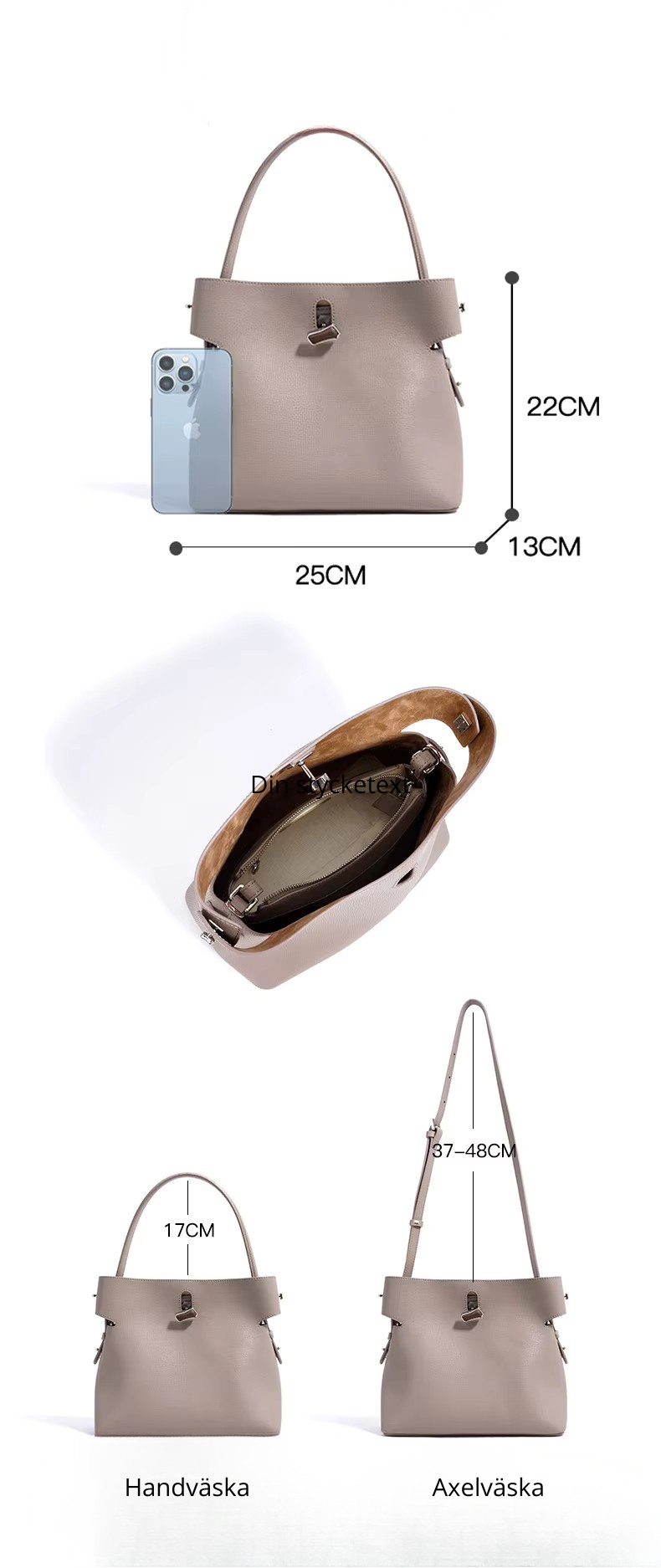 Medium–stor tote som passar mobil, plånbok, nycklar, smink, anteckningsblock och andra vardagsprylar utan att kännas tung eller klumpig.