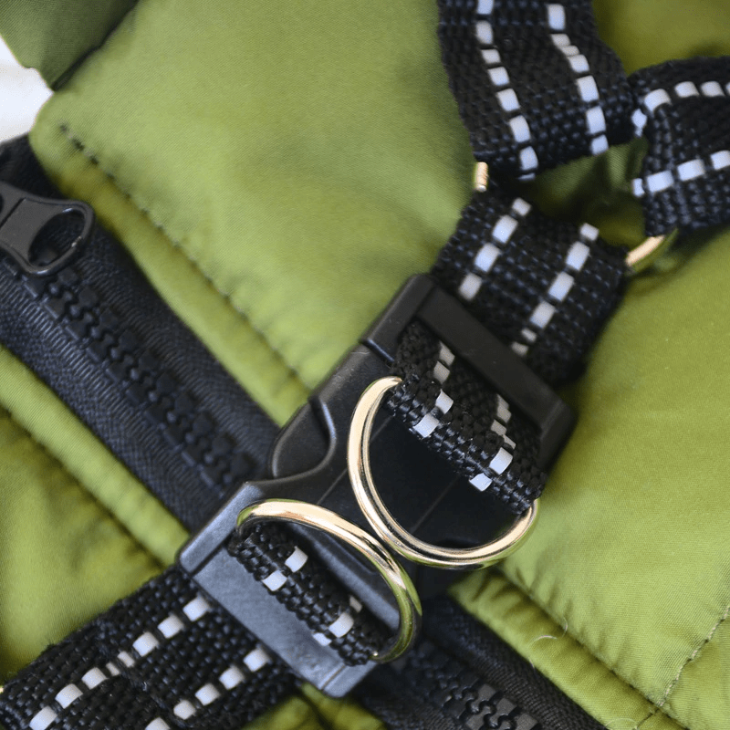 Förbättra din hunds säkerhet med vår inbyggda sele. Den reflekterande selen gör din hund synlig i mörkret och ger extra trygghet under promenader på vinterkvällarna.