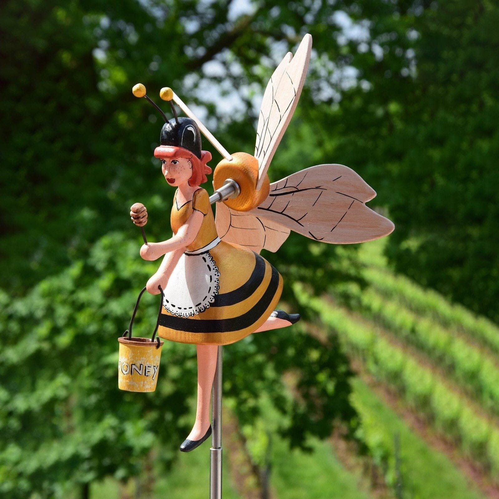 Förvandla din trädgård till en förtrollande plats med vår vackra vindflöjel. Denna charmiga dekoration ger en touch av förtjusande kreativitet till din utomhusmiljö. Se hur dess vingar utför magi när de snurrar fritt i vinden och lockar vackra fåglar att sätta sig på den.