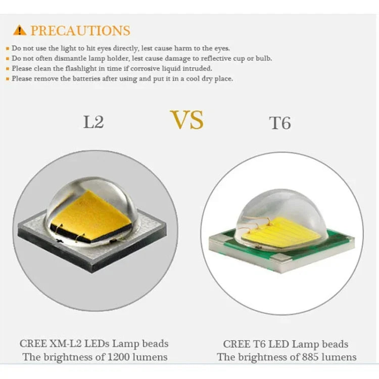 En dykficklampa med stabil prestanda är avgörande för säkerhet och sikt under vatten. Den här dykficklampan är byggd för att leverera stark belysning och hög tillförlitlighet även i utmanande miljöer. Den är utrustad med fem kraftfulla Cree XM-L2 LED-emitter som ger en imponerande ljusstyrka upp till 6800 lumen. Den fokuserade ljuskäglan ger djup penetration i mörka undervattensmiljöer, vilket gör den idealisk för dykning, undervattensinspektioner och nattdyk. Med IPX8-klassning är denna dykficklampa helt vattentät och klarar ett dykdjup på upp till 150 meter, vilket gör den lämplig även för mer avancerade dykare.