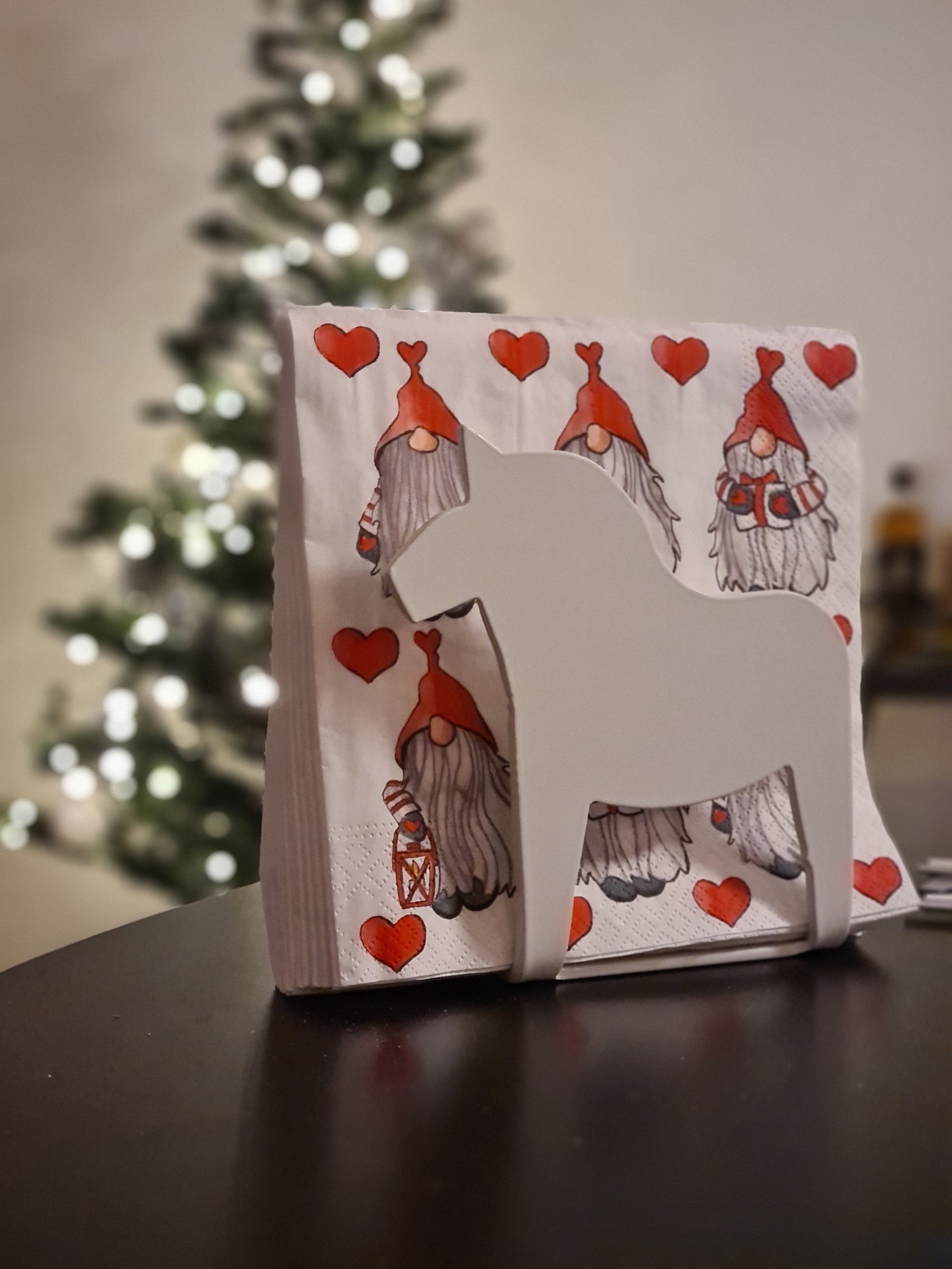 Ett solitt servettställ tillverkad i metall med en unik design med motiv av dalahästar från KungDesign