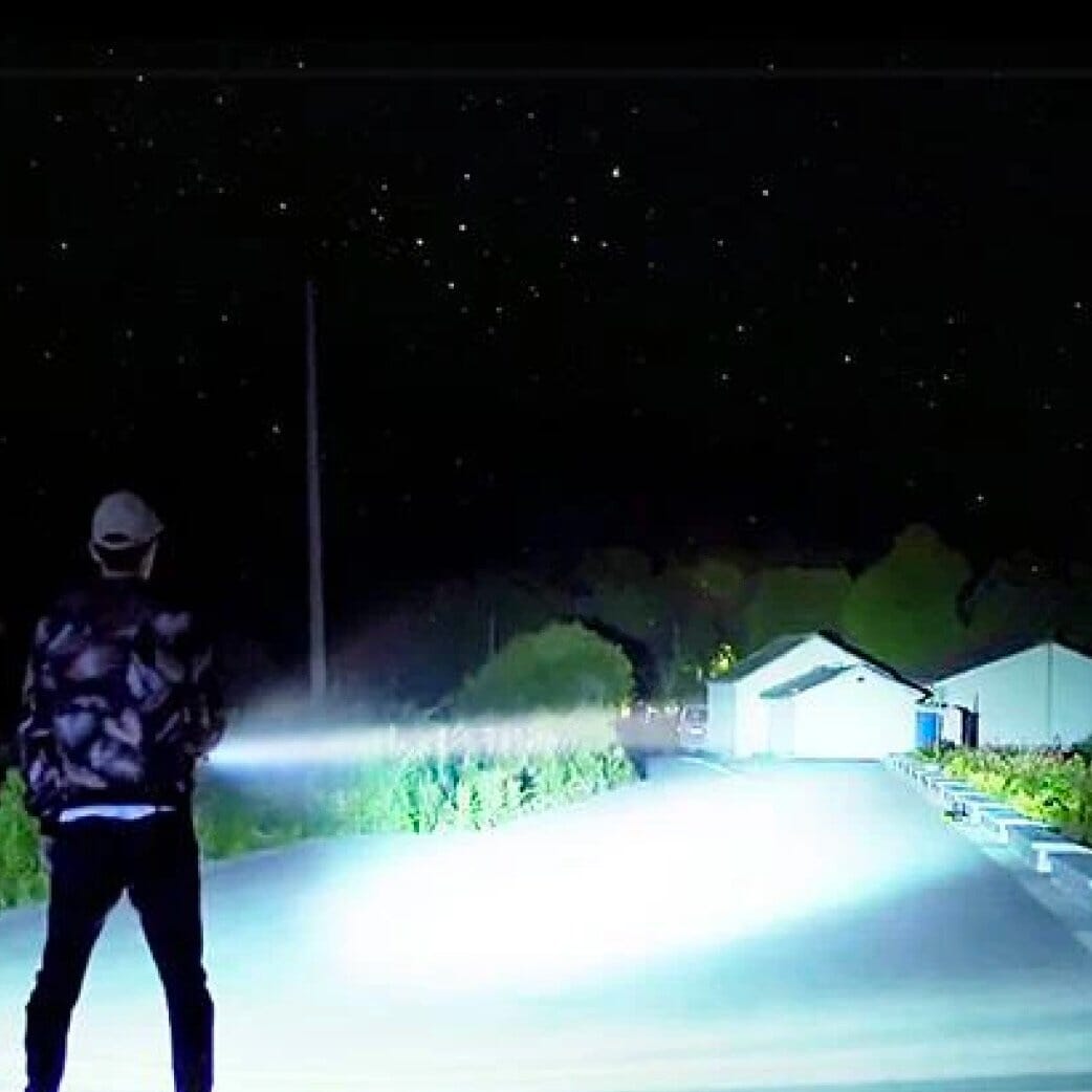Lyser upp områden mellan 400 och 700 meter beroende på väderförhållanden, vilket gör den till det perfekta valet för alla belysningsbehov.