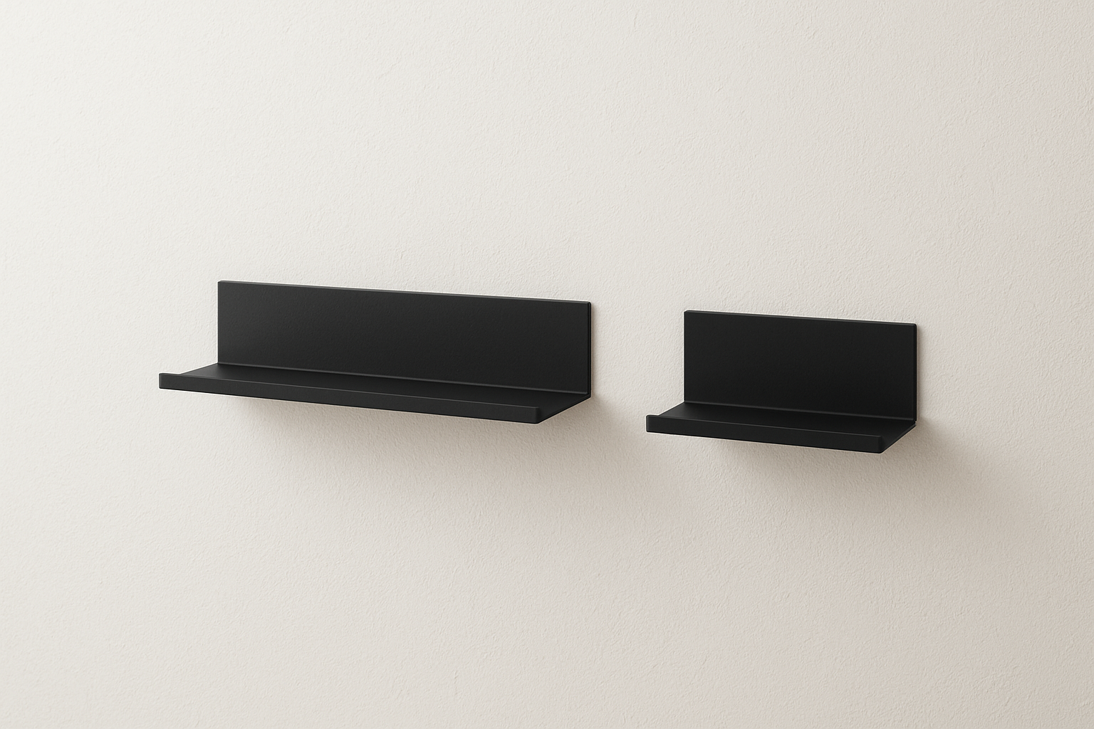 Våran egentillverkade Vägghylla i metall ”HÄNGA” från KungDesign. Den kommer i två storlekar och passar perfekt i ditt badrum eller varför inte på väggen i köket med kokböcker på eller kanske i vardagsrummet där den agerar som hållare för tavlor.